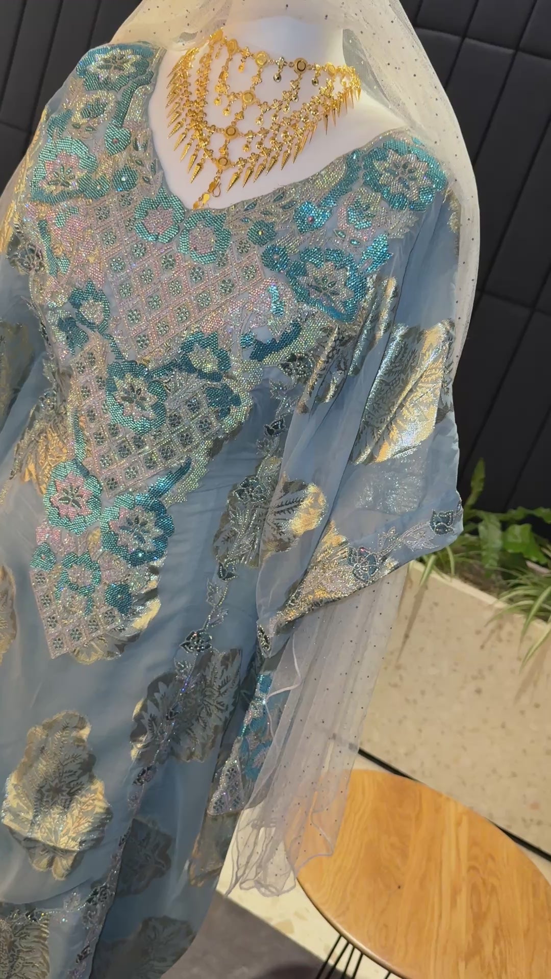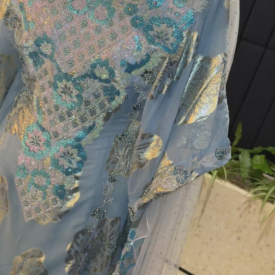 Emerati blue Thobe two pieces with belt inside