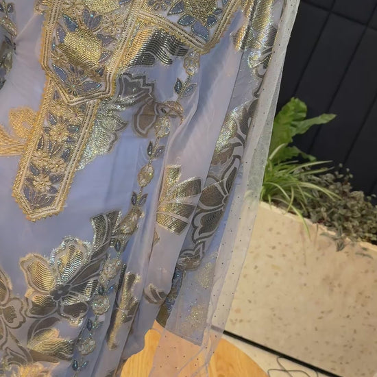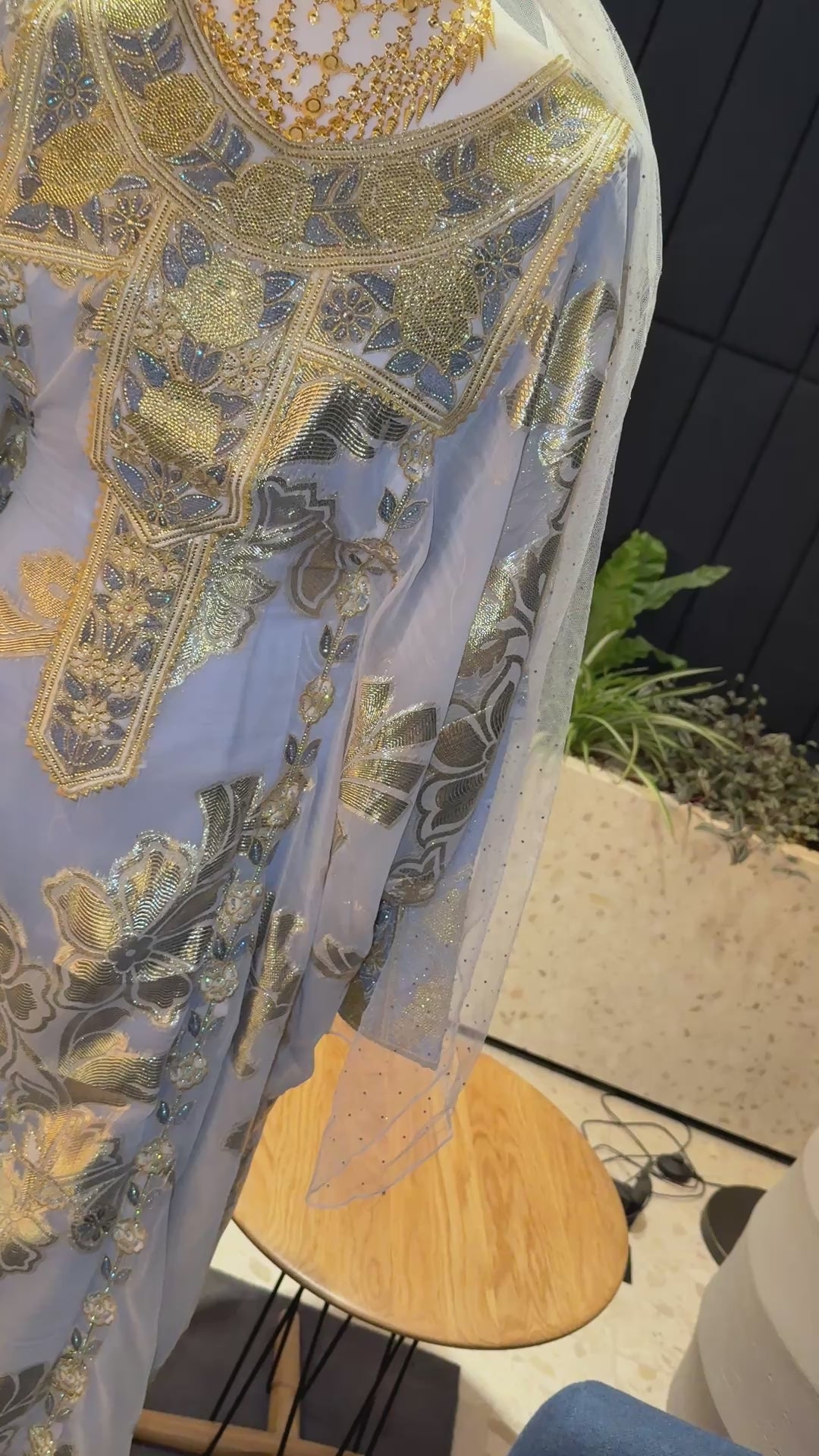 Grey/blue sky Emirati Thobe two pieces with belt inside
