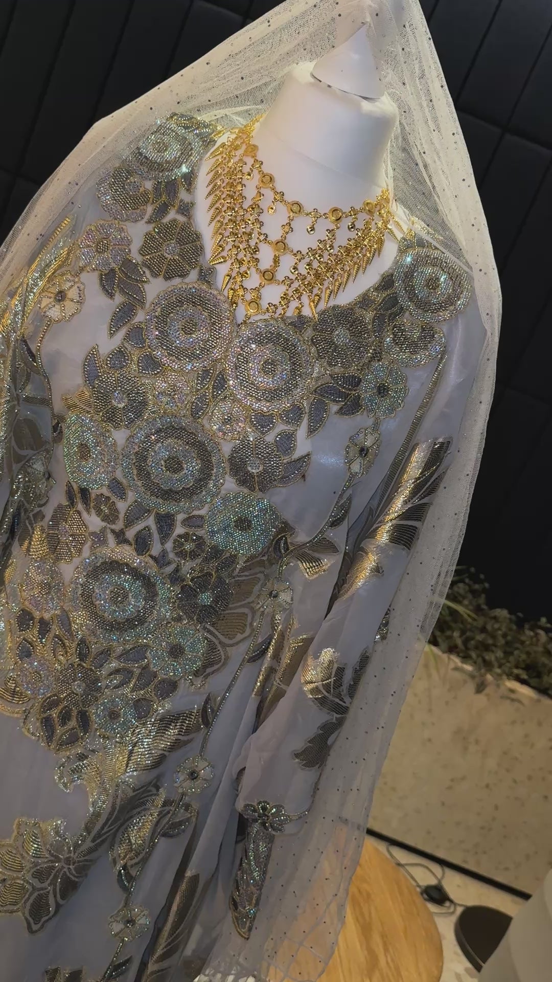 Grey/ blue sky Emirates Thobe with two pieces and belt inside