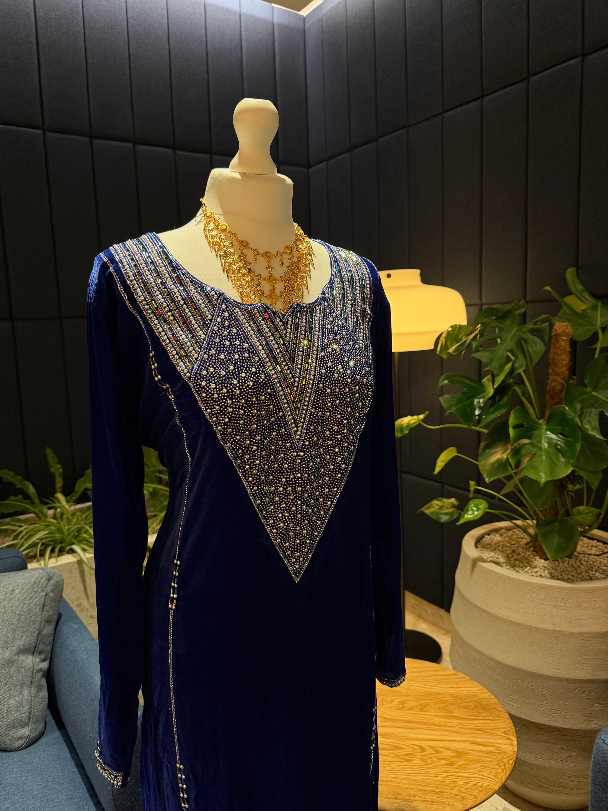 Light blue velvet mkhawar