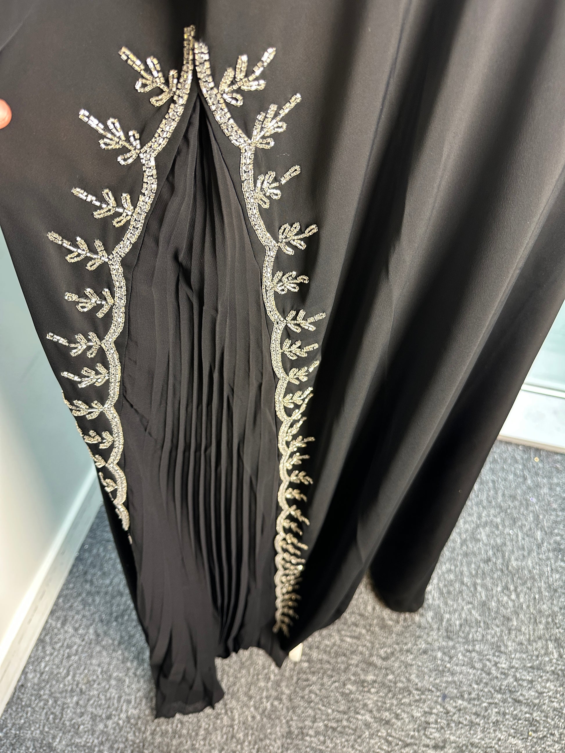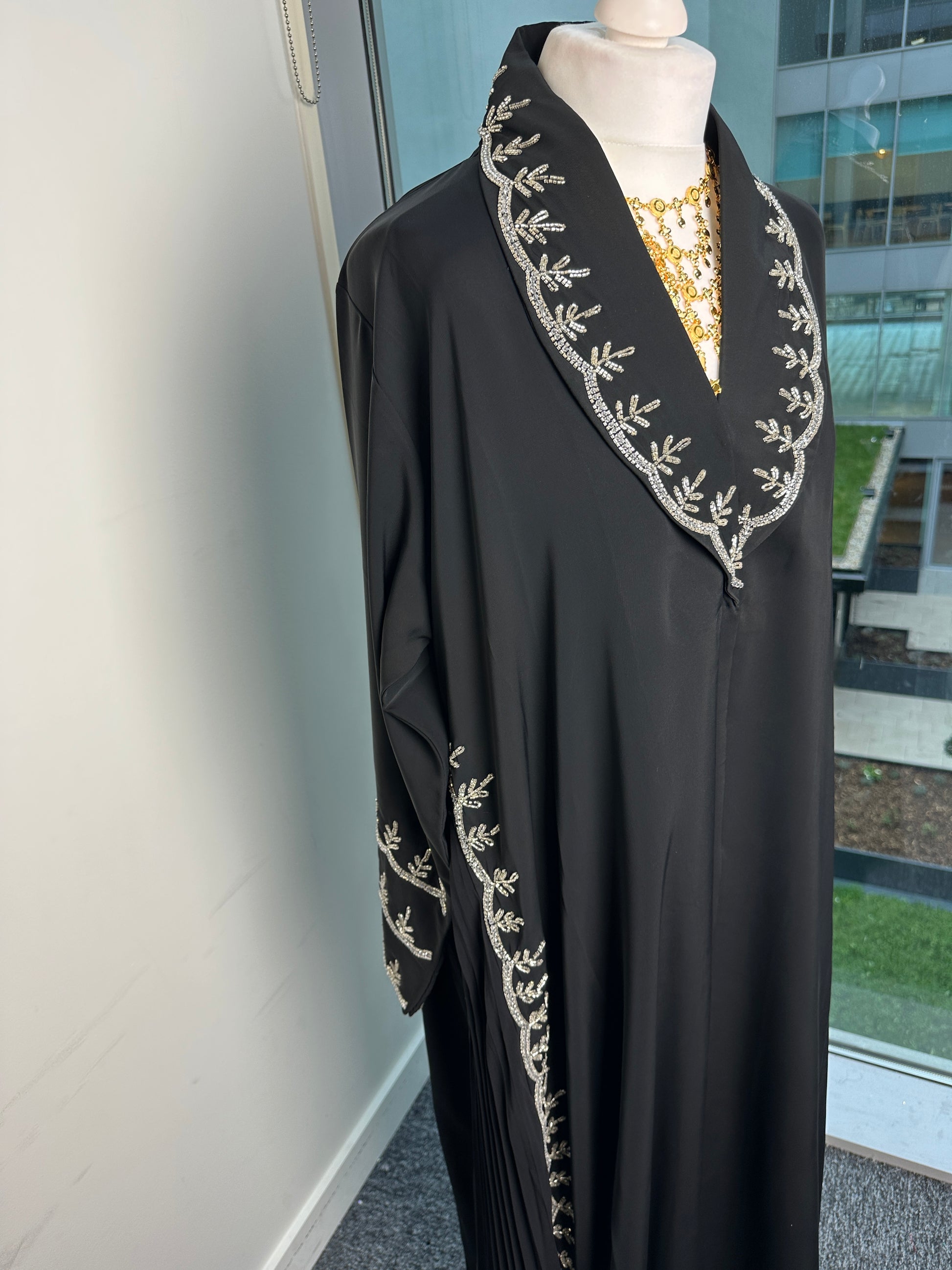 Silver collar abaya with side pleats and hijab